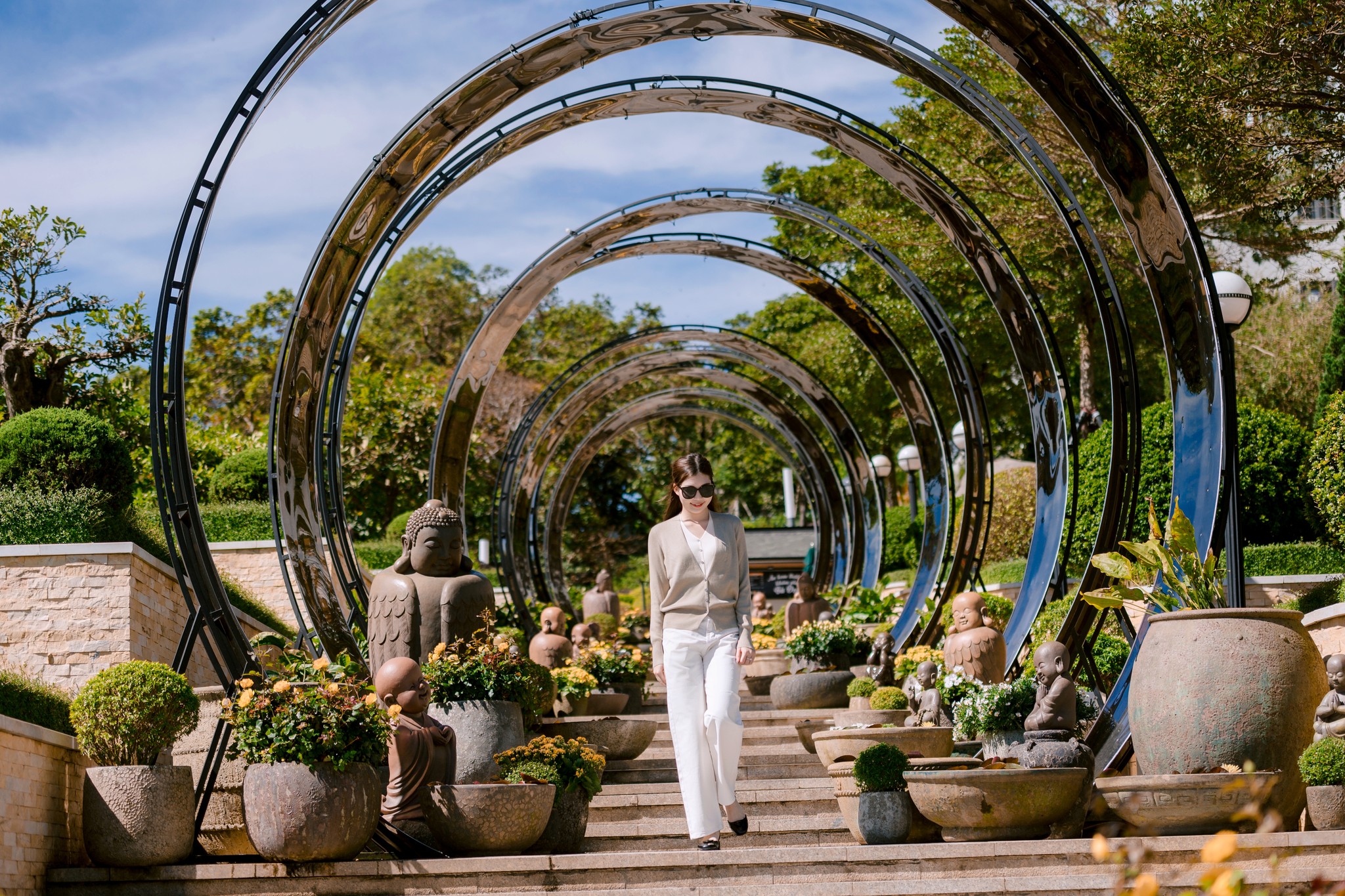 10:00 - 12:00: Trải nghiệm hệ thống cáp treo hiện đại lên đỉnh núi, check-in cảnh quan toàn cảnh Tây Ninh từ độ cao gần 1.000m. Tham quan tượng Phật Bà Tây Bổ Đà Sơn và khu vực quảng trường trên đỉnh núi.